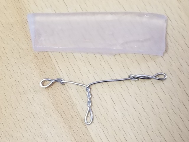 今回は電子レンジで加熱して溶かし、揉んでからワイヤーに巻いて形を作りました。
