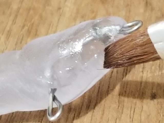表面が多少あれていても、水に浸けると透明になりますが、美観を気にする場合はアセトンを軽く全体に塗って乾燥させるとツヤを出すことができます。
