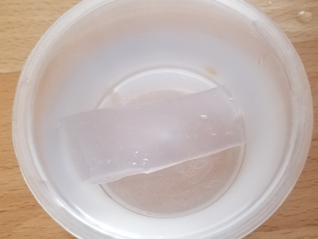 お湯で溶かすこともできるのですが、今回の組成だと微妙に溶けた時の柔らかさが足らないようです。常温での硬さとのバランスになりますが、このあたりは可塑剤の入れ目で調整もできると思います。