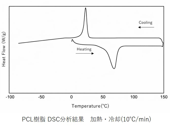 ポリカプロラクトン。生分解性樹脂。良好な生分解性を持ち、土壌・海洋とも分解が進みます。押出・射出成形、フィルム・シート加工、3Dプリントなどで使用される他、低融点であることからコーティング・シーリング・接着用途でも使われます。